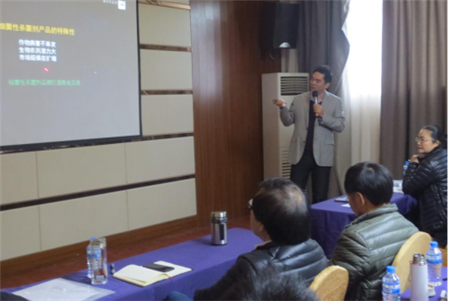 來自云南農(nóng)業(yè)大學(xué)的何月秋教授從生物農(nóng)藥的分類開始說起,詳細(xì)講授了生物農(nóng)藥的現(xiàn)狀和發(fā)展趨勢(shì),不僅填補(bǔ)了我們?cè)趯I(yè)知識(shí)上的一些空白,更讓我們意識(shí)到生物農(nóng)藥發(fā)展的機(jī)遇與挑戰(zhàn)并存,必須加快搶占市場(chǎng)的步伐才能發(fā)展壯大,為在座所有人都上了極為珍貴的一課!