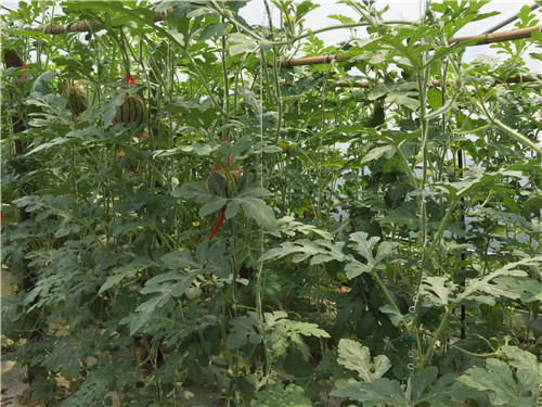 在紅巖鎮(zhèn)政府的推薦下,合作社從今年3月15日西瓜苗移栽后開始全程使用太抗幾丁聚糖植物誘抗劑、太抗枯芽春枯草芽孢桿菌、太抗木子美哈茨木霉菌等一系列生物農藥用于防治病害。至5月下旬,共施藥6次,病害得到有效控制。期間發(fā)生了蔓枯病和枯萎病,用太抗-幾丁加太抗-枯芽春兩次之后明顯控制住了病情,無病毒病發(fā)生。