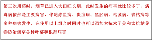 第三次用藥:太抗-幾丁50g+50%吡蚜酮5g+葉面肥50g兌水15kg噴霧煙株(5月28日)