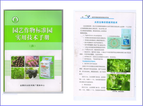 自2012年取得三證后正式推向市場以來,由于安全可靠效果好,太抗生物農(nóng)藥能夠在供給側為健康生活提供基礎,奠立了太抗在生物農(nóng)藥行業(yè)領軍前行的良好格局。由于產(chǎn)品推廣示范應用的良好效果,太抗生物農(nóng)藥入選農(nóng)業(yè)部關于印發(fā)《農(nóng)企合作共建示范基地深入推進<到2020年農(nóng)藥用量零增長行動實施方案計劃>實施方案》(農(nóng)農(nóng)【2015】61號),被全國農(nóng)業(yè)技術推廣服務中心編入《園藝作物標準園使用技術手冊》,也被成都市植物檢疫站編入《成都市生物農(nóng)藥應用手冊》中第一個推薦使用的生物農(nóng)藥。