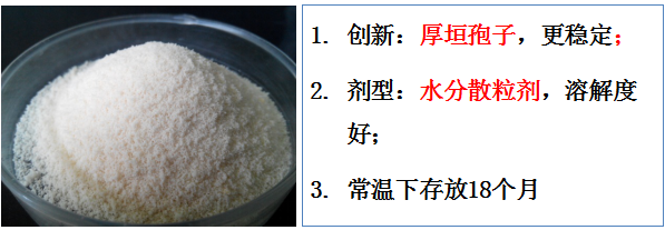 厚垣孢子,抗逆性強(qiáng),貨架期長,效果穩(wěn)定克服了生物農(nóng)藥常溫下不能長期存放的技術(shù)瓶頸。