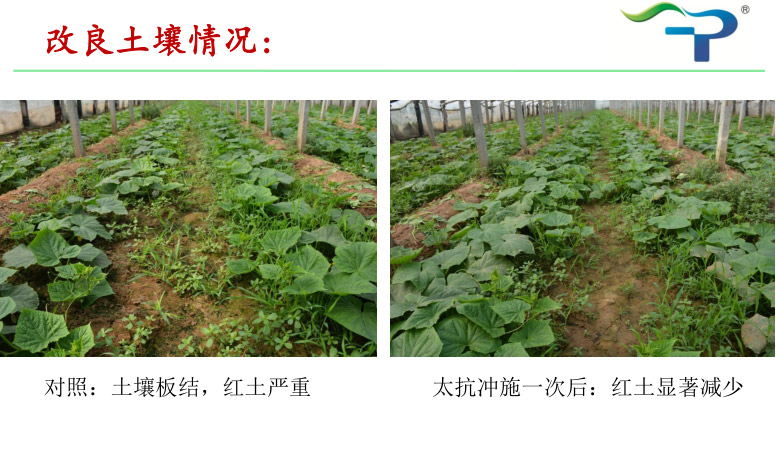 去年,太抗“枯芽春+木每靈”組合在山東區(qū)域的辣椒根腐病、豇豆莖基腐等病害上表現(xiàn)突出,得到種植戶(hù)與零售商的一致好評(píng),給予其“枯木逢春”組合的美譽(yù)。今年,小抗的同事們結(jié)合公司土壤改良產(chǎn)品——土蘇,在山東青州某土壤板結(jié)嚴(yán)重的大棚黃瓜上,再次驗(yàn)證了“枯木逢春”組合的神奇!
